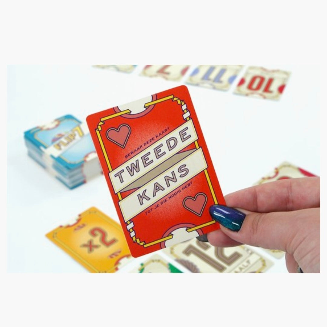 Flip 7 is het ideale kaartspel voor kleine en grote groepen. De eenvoudige spelregels en korte spelduur zorgen ervoor dat je met Flip 7 van elk moment een superspannend speelmoment kunt maken! Ben jij het type dat op tijd stopt en je punten veilig stelt of neem je liever het risico om alles te verliezen voor de kans om 7 verschillende kaarten om te draaien? Daag al je vrienden en familie uit en kom erachter wie het meeste lef en geluk heeft in Flip 7!