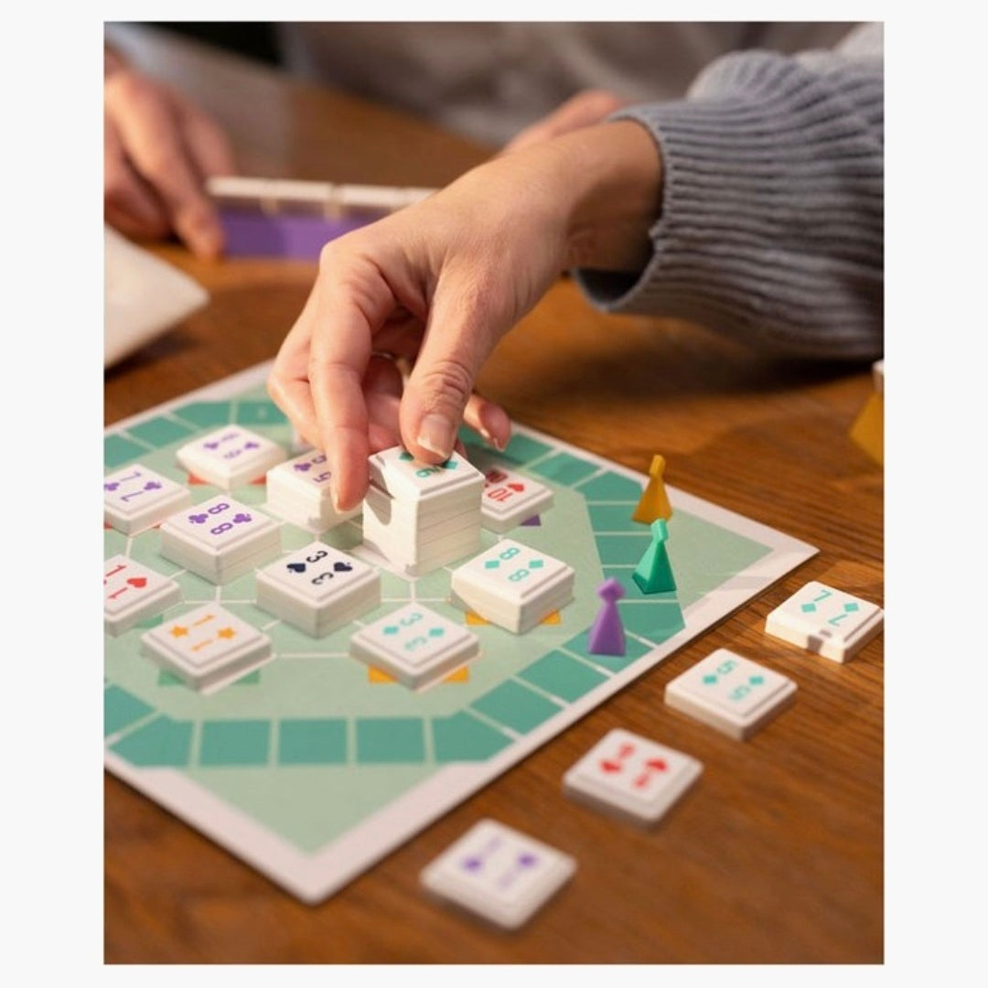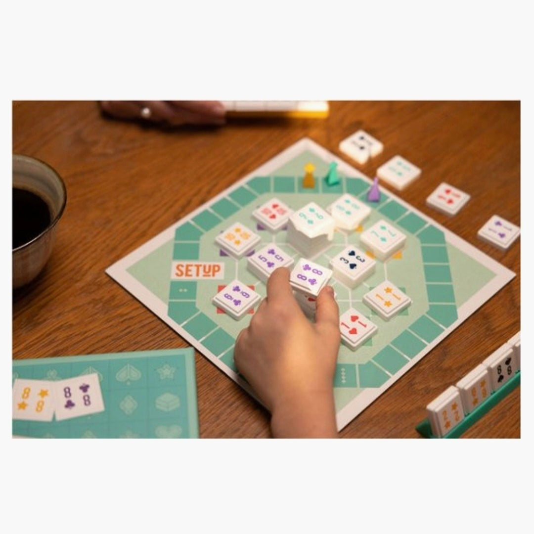 Spelers combineren getallen op het bord om zo punten te scoren en als eerste de finish te bereiken. Combineer kleuren en cijfers van de kaartachtige tegels en bouw sets op het speelbord. Plaats je tegels goed om meerdere sets te activeren en extra punten te scoren. Maar let op… speel je tegenspelers niet in de kaart!