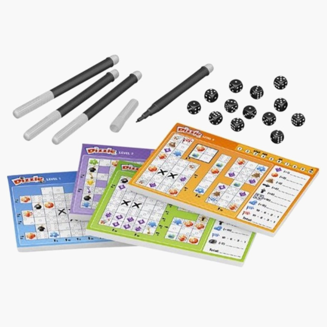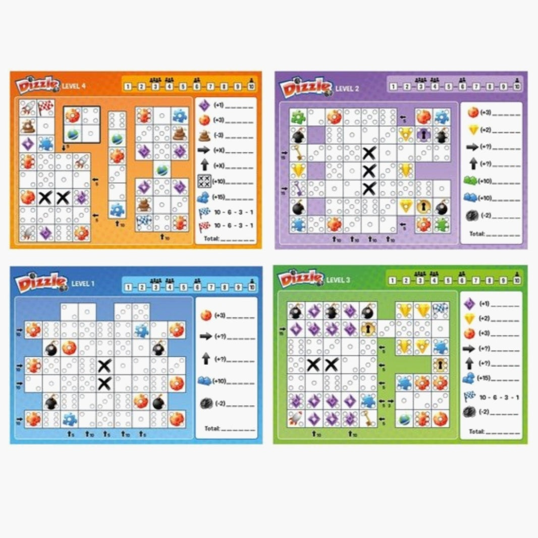Dizzle, een waardige aanvulling op “Keer op Keer” en “Clever”. De spelers nemen om beurten een dobbelsteen van de tafel en leggen deze op hun speelveld. De volgende dobbelstenen moeten de spelers steeds naast een andere dobbelsteen leggen. Aan het einde van een speelbeurt kruisen de spelers alle vakjes met een dobbelsteen erop aan.