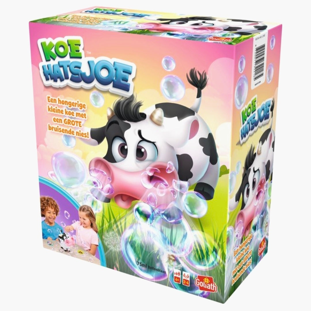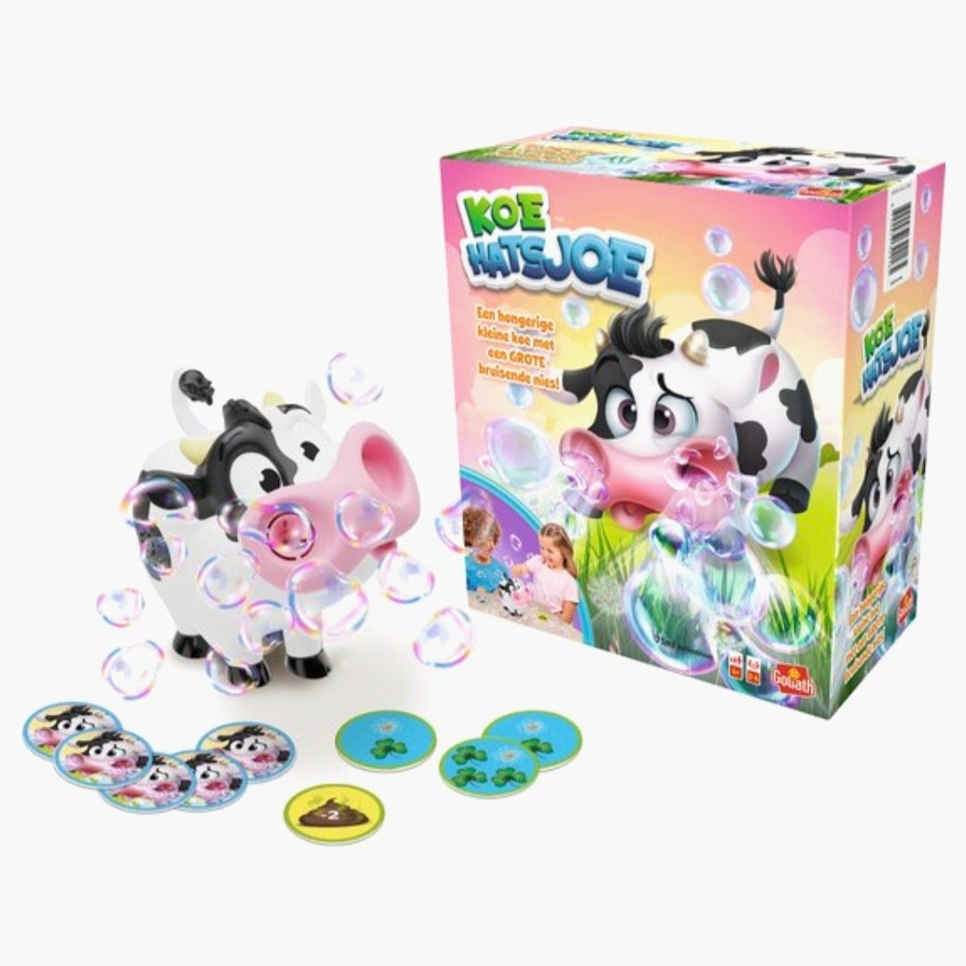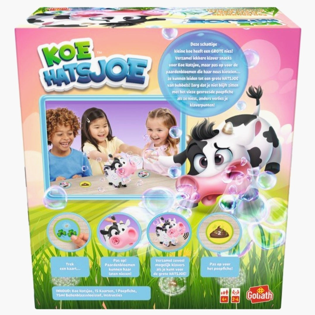 Ontmoet Koe Hatsjoe! Deze koe is super fan klavertjes, maar mega allergisch voor paardenbloemen. Tijdens dit leuke actiespel moet je proberen om zoveel mogelijk klavertjes verzamelen. Maar pas op! Wanneer je een paardebloem pakt, moet je op het hoofd van Koe Hatsjoe drukken, en heb je maar zo kans dat hij heel hard moet niezen. Wanneer dit gebeurt zal er een bellenfestijn starten en is het spelletje afgelopen!