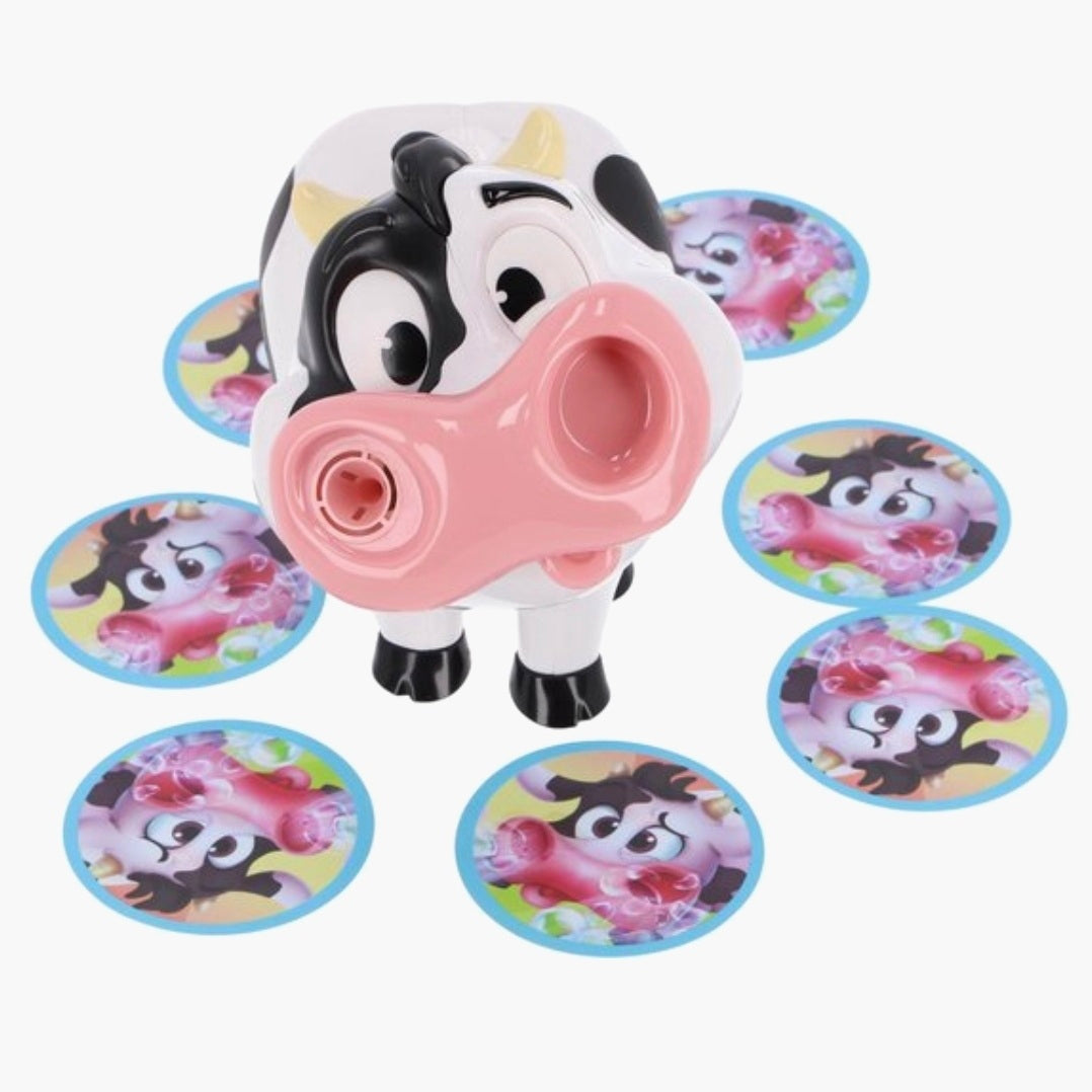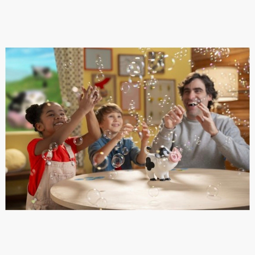 Wanneer je op het hoofd van Koe Hatsjoe drukt kan hij gaan niezen wat zorgt voor veel zeepbellen!