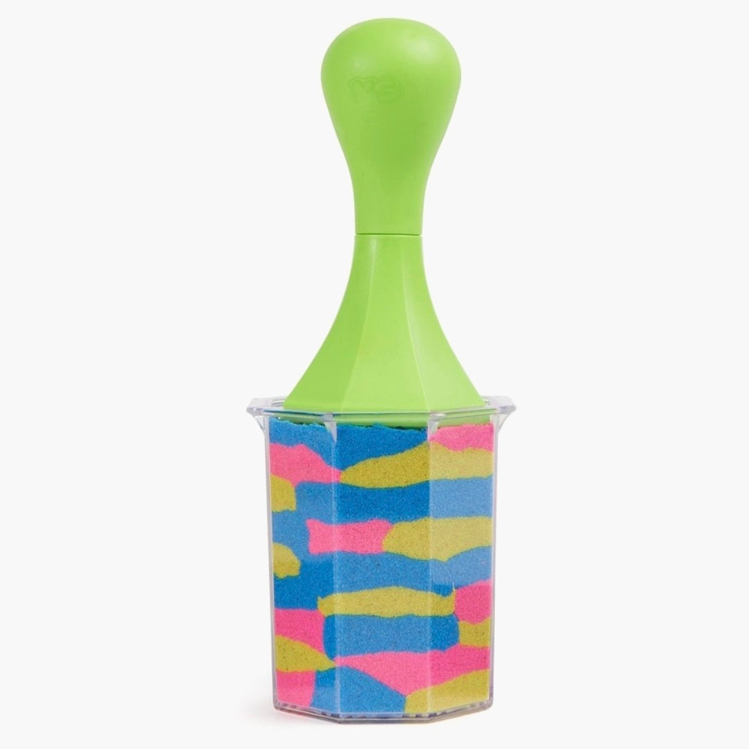 Met de Kinetic Sand Squish N' Create kun je je creativiteit de vrije loop laten. Deze Kinetic Sand-set heeft alles wat je nodig hebt om zandkunst te maken: in totaal 382 g blauw, geel en roze speelzand. Laat het door je handen stromen - het is zo leuk dat je er niet mee wilt stoppen. Bevestig het platdrukgereedschap aan verschillende gereedschappen om het zand plat te drukken, te snijden en te vormen. De speelmogelijkheden zijn eindeloos. Maak het zand luchtig, vul de achthoekvorm en haal het midden van het zand weg met het platdrukgereedschap. Druk het zand plat met verschillende gereedschappen, meng het zand of maak lagen van Kinetic Sand in de vorm. Je kunt steeds weer opnieuw spelen.