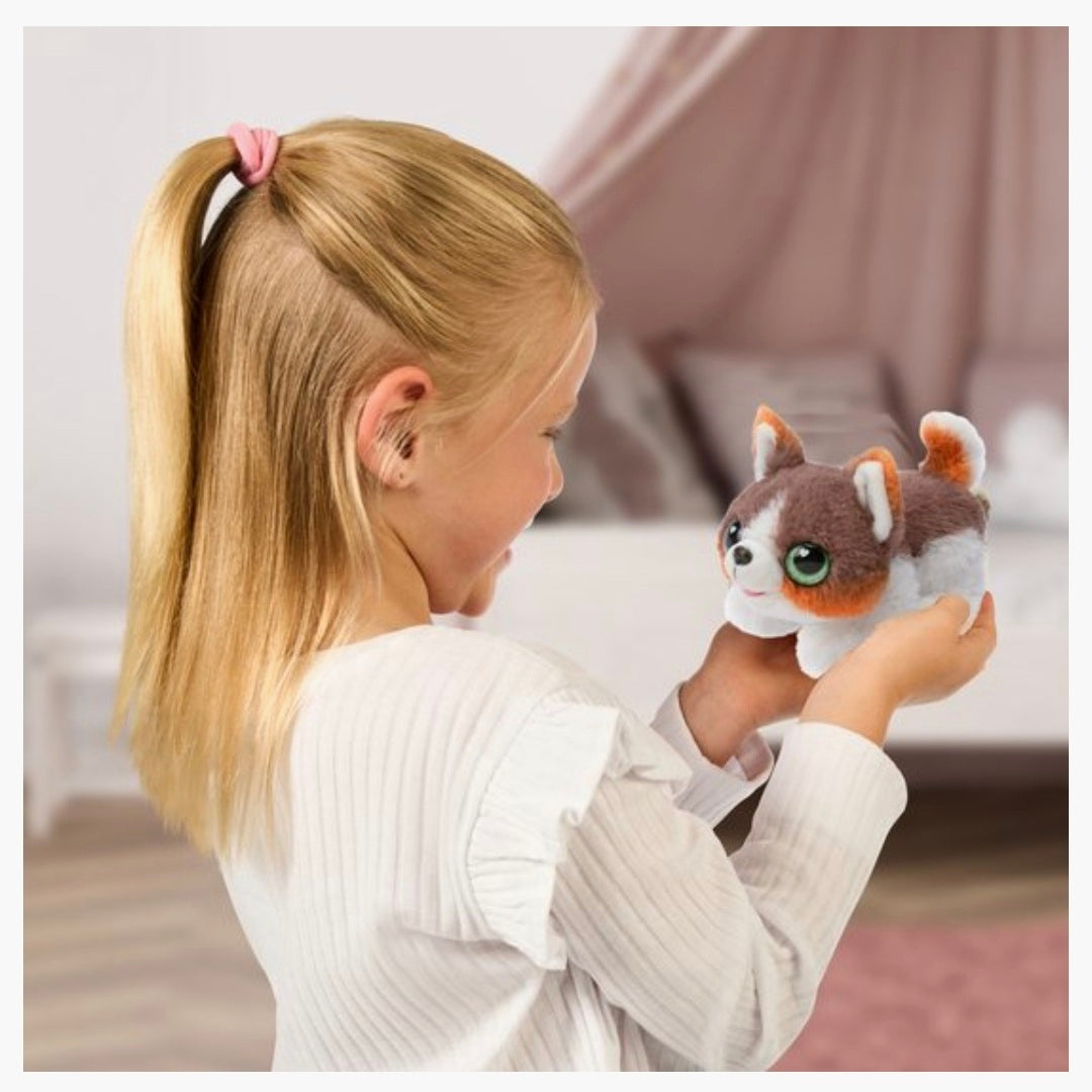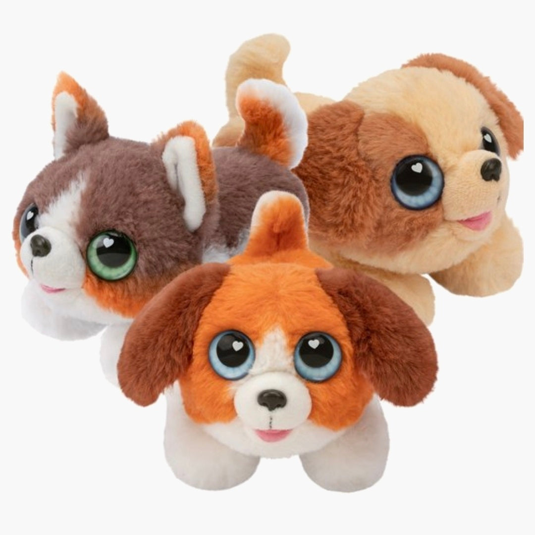 Nu is het tijd voor de échte verrassing: open de deur en... Wauw! Daar is ineens jouw schattige puppy! ls het er één met slappe oren of puntige oren en heeft je pup groene bruine of blauwe ogen? Er zijn drie verschillende puppy's te ontdekken, maar 1 ding is zeker, ze zijn alledrie superzacht en knuffelig!