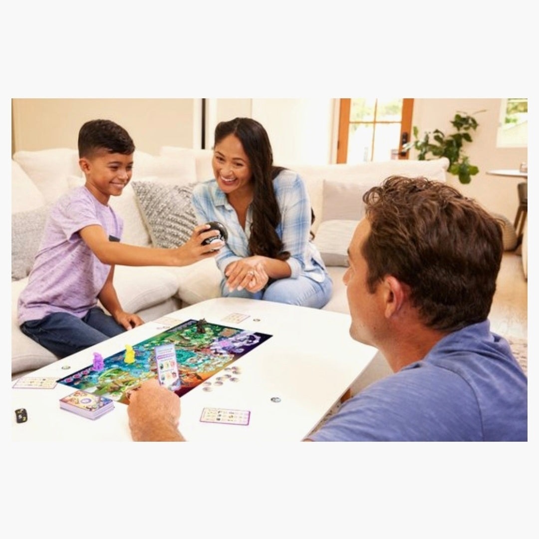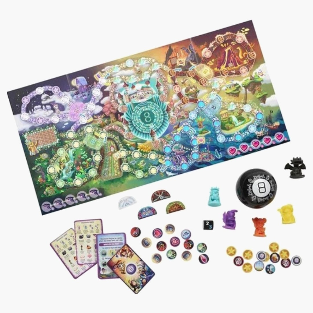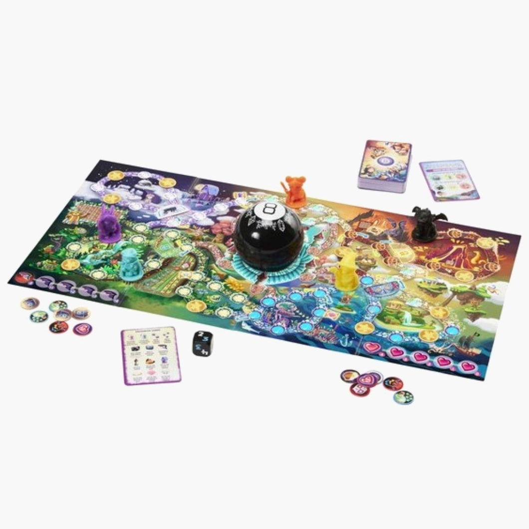 Reis naar een land vol avontuur en mysterie met het Magic 8 Ball Magische Ontmoetingen bordspel, voor de hele familie! Het koninkrijk verkeert in chaos wanneer Gadworm de Draak het land terroriseert, nu moeten de boshelden de dag redden! Werk samen in dit coöperatieve bordspel waarbij je ook gebruik maakt van de Magic 8 Ball, en beleef een magische spelavond.