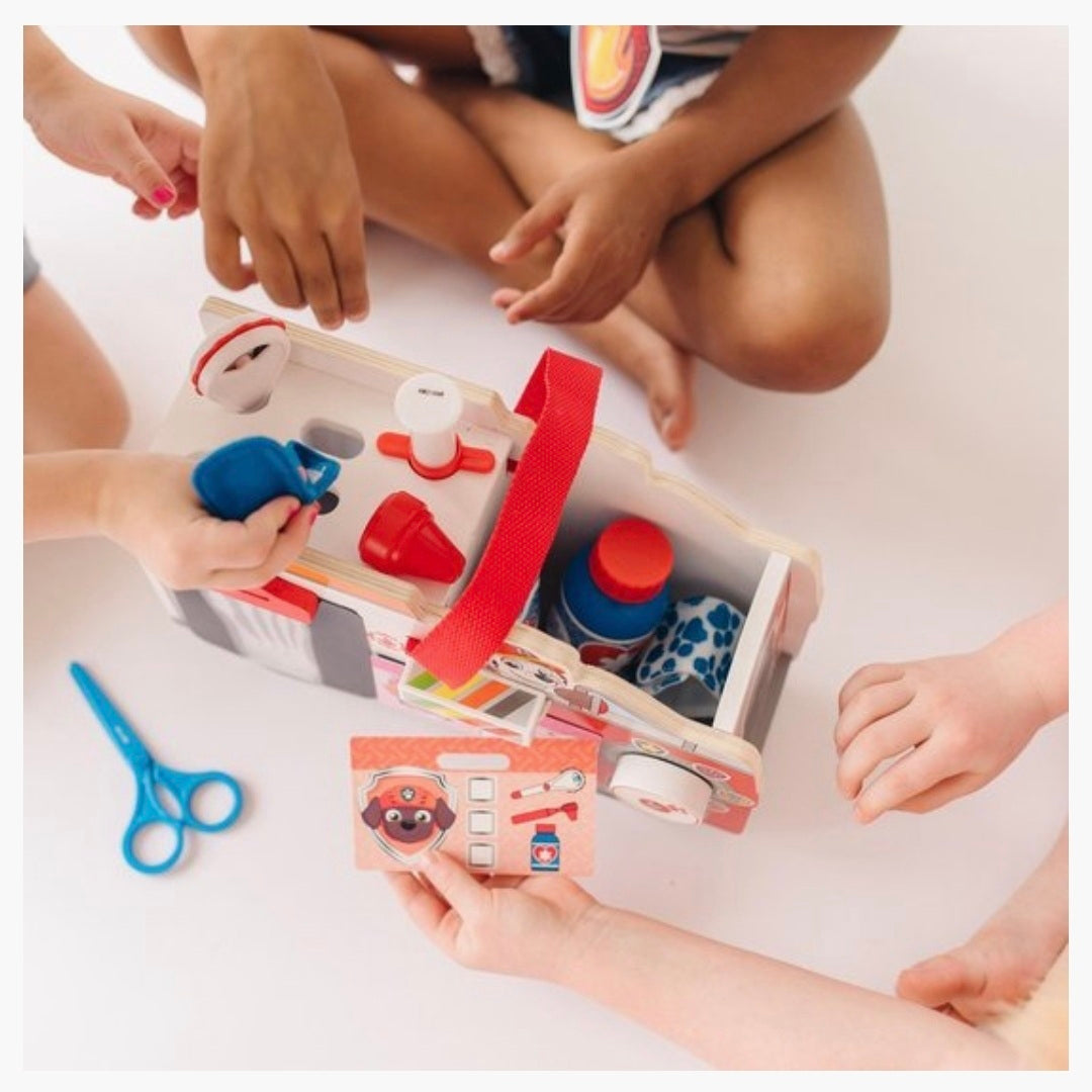 Beleef spannende avonturen met de PAW PatroltM Eerste Hulp Speelset! Met deze 14-delige set kunnen kinderen vanaf 3 jaar hun eigen reddingsmissies uitvoeren. Klik een missiekaart aan de houten koffer, draai het blokje om het noodniveau aan te geven, kies welke pup in actie komt en... PAW Patrol is klaar om te helpen!