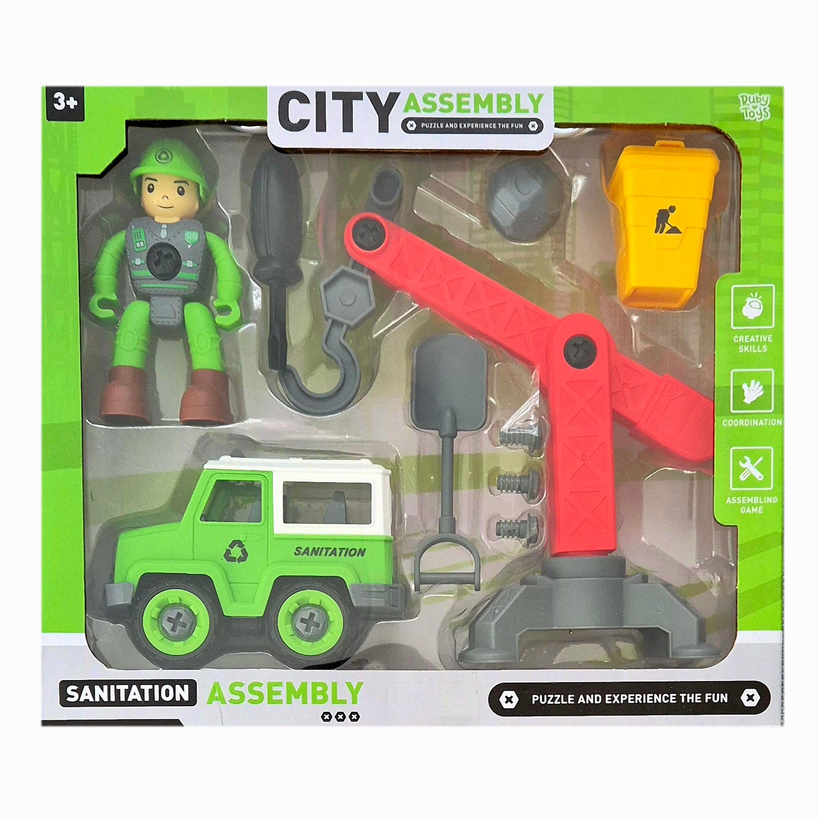 Deze speelset uit de productlijn Ruby Toys met een Sanitair auto, hijskraan en speelfiguur. En dat is hij zeker want je kunt er meteen mee spelen. Maar... er is meer! Met de bijgeleverde schroevendraaier kun je verschillende onderdelen losdraaien en ergens anders weer monteren. Zo heb je, samen met alle accessoires, extra veel speelmogelijkheden