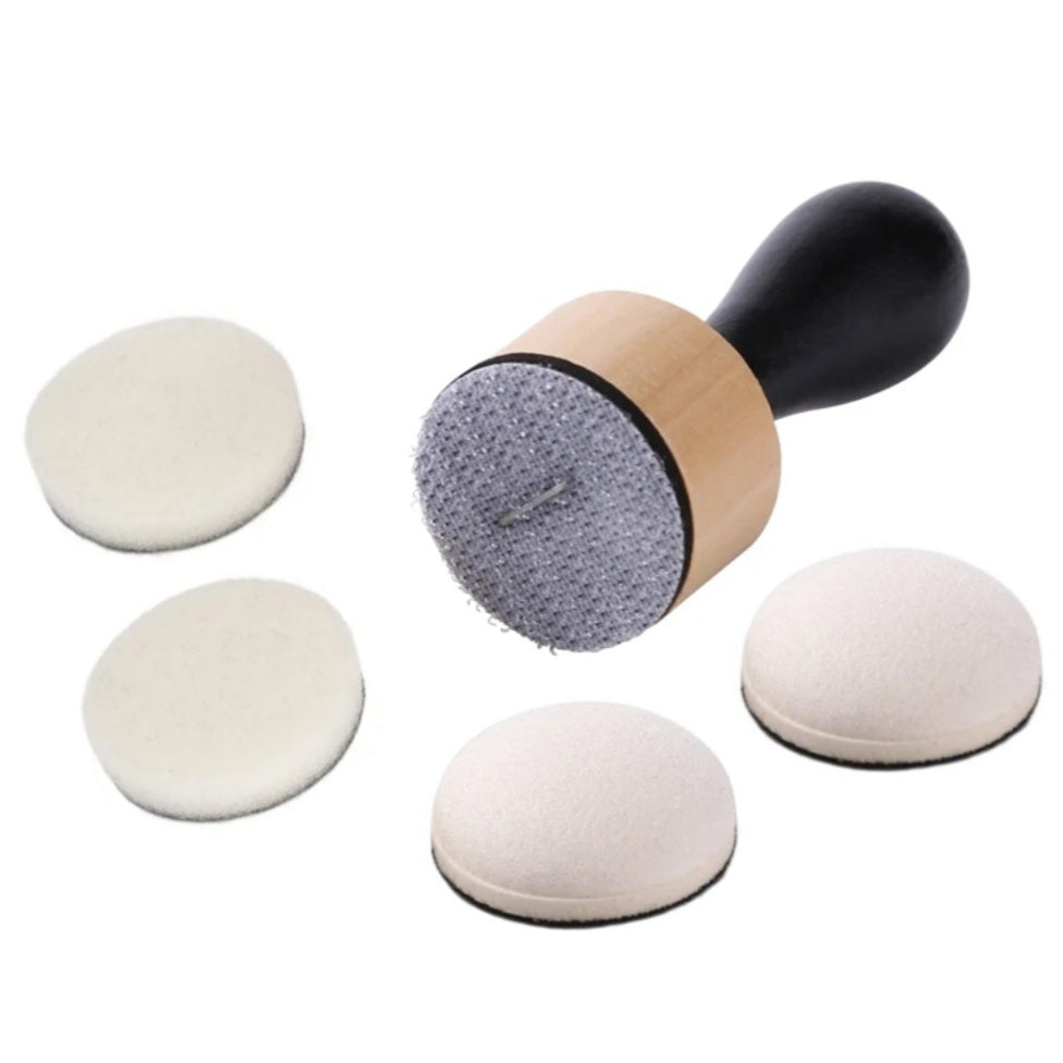 De sponshouder heeft een mooi houten handvat en is 7,5cm. Bolle en platte spons opzet stukken kun je makkelijk bevestigen en verwijderen door de klittenband. Het is makkelijk in gebruik. De sponsjes hebben diameter van 3,3cm en 3cm. De schuimsponzen zijn gespecialiseerd gemaakt om inkt te absorberen.