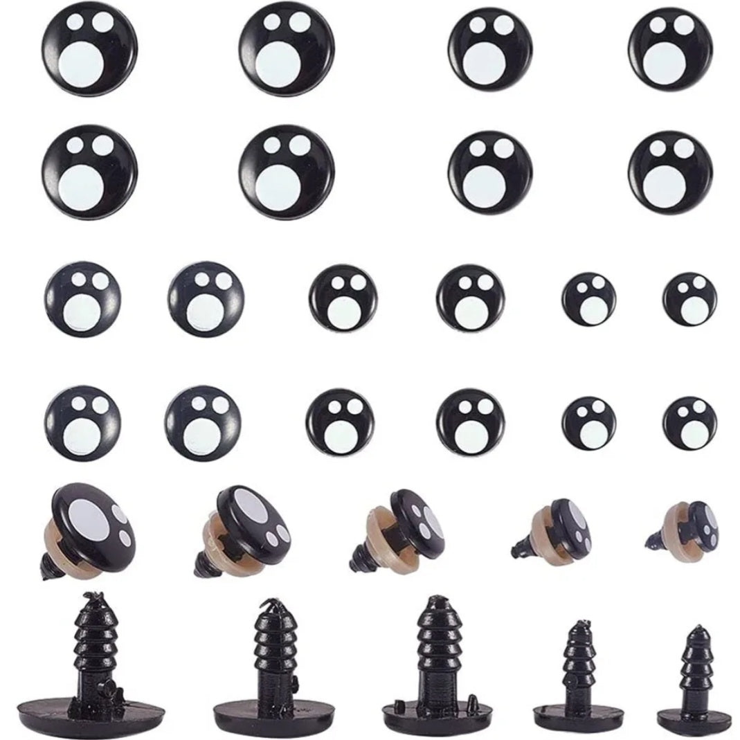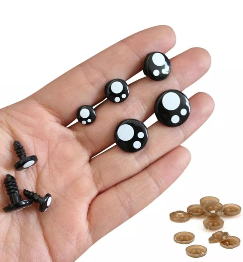 Veiligheidsoogjes zwart wit - diverse afmetingen