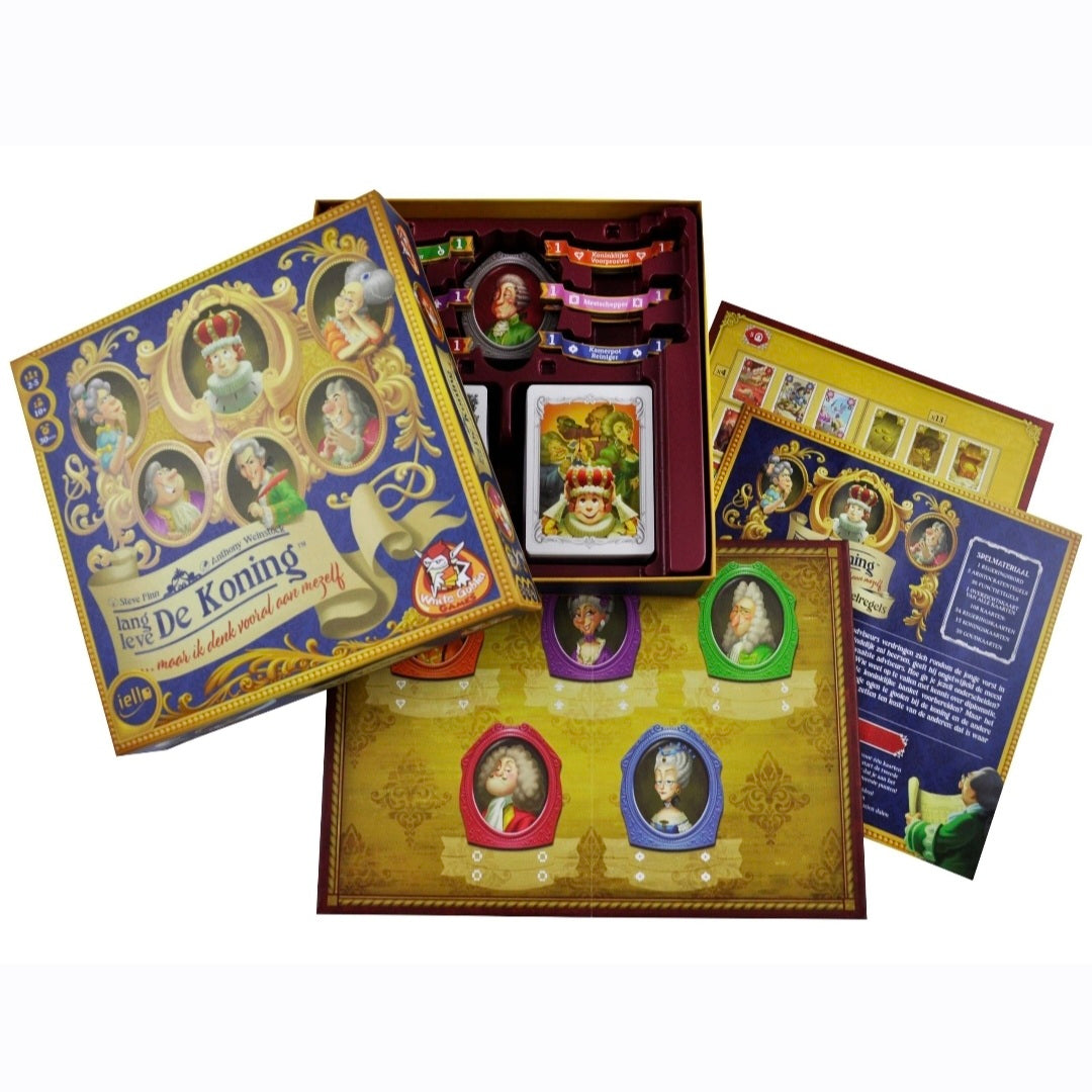Lang Leve de Koning is een vermakelijk kaartspel waarin verschillende elementen van bieden, speculeren en kaarten trekken naar voren komen. Zet jij jezelf in een goed daglicht ten kosten van anderen.