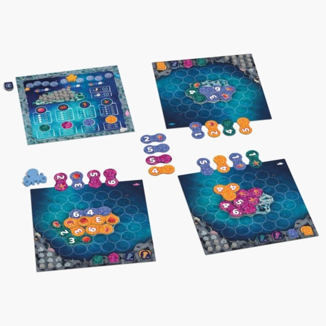 Duik in Lumicora en werk aan de wederopbouw van een koraalrif. Het is een tegellegspel vol strategische diepgang, maar blijft toegankelijk. Het heeft een hoge herspeelbaarhei d en een dynamische speelervaring. Het biedt ook de perfecte balans tussen interactie en zelfstandige techniek, waardoor spelers elkaar beïnvloeden zonder dat het spel confronterend wordt.